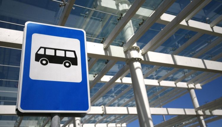 Знак остановки общественного транспорта у здания автовокзала. Архивное фото